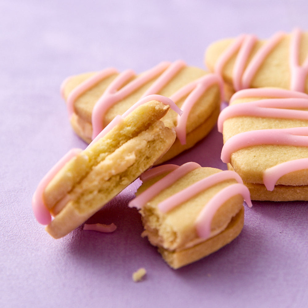 Border: Frosting (mascarpone (cream (MILK)), (MILK) protein concentrate, citric acid E330), icing sugar (cane sugar, WHEAT starch), cream cheese (skimmed MILK), Inscription: cream cheese (MILK), salt, butter (MILK) salt. icing sugar: cane sugar, maize starch, food colour (humectant: E422 glycerol, thickener: E551 silica, colour E102 tartrazine, colour E122), sprinkles (Dextrose; corn starch; sugar; maltodextrin; anti-caking agent: E572; thickener: E414; glazing agent: E903; colour: E171, sugar, rice flour, sunflower oil, potato starch, colour (Safflower, Lemon), sugar, rice flour, sunflower oil, potato starch, colour (spirulina, radish, lemon, blackcurrant), flour (WHEAT), salted butter ((MILK), salt), caster sugar, (EGGS),vanilla (fructose syrup, vanilla extract, propylene glycol, exhausted vanilla seeds, caramel)