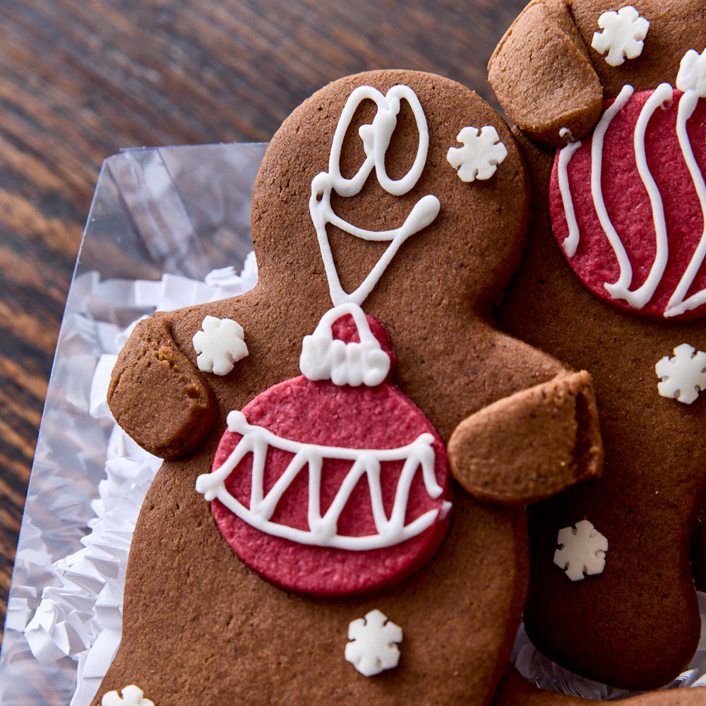 Wish everyone a Merry Christmas with our hand-decorated and inscribed gingerbread snowmen.