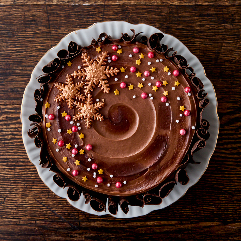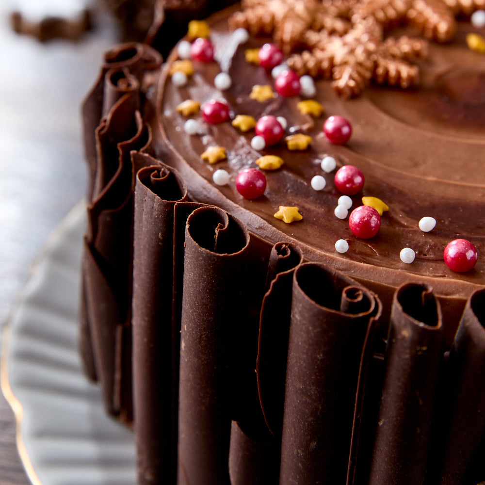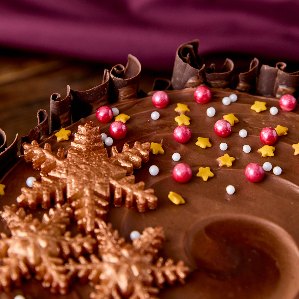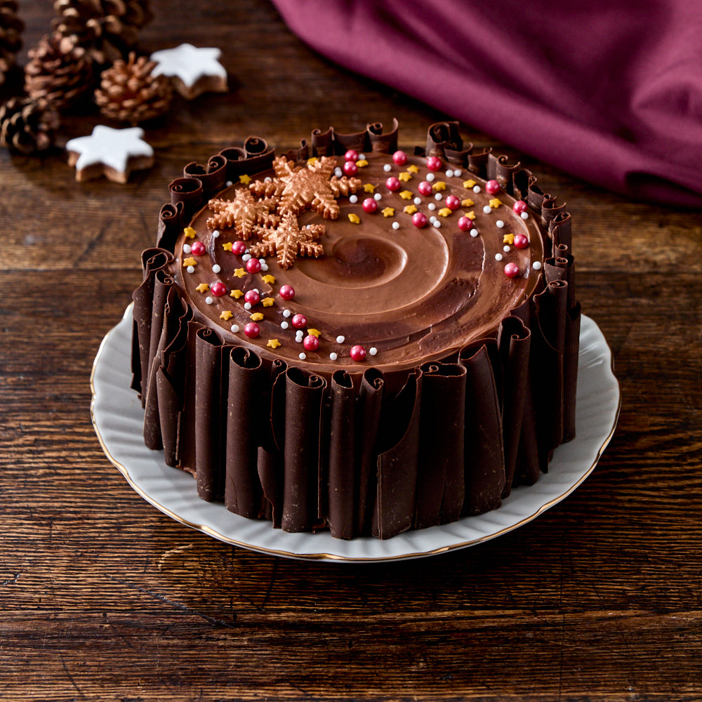 Indulge in the festive spirit with our showstopping Dark Chocolate Cherry Forest cake, a decadent treat that combines rich flavours with our Konditor festive charm. This delicious dessert features layers of beautifully moist chocolate sponge, filled with a velvety mascarpone vanilla frosting, perfectly balanced by a cherry compote that adds a burst of flavour throughout. Covered in a smooth, indulgent layer of chocolate frosting and finished with chocolate shards and a festive decoration, this cake is the perfect centrepiece for any Christmas feast!