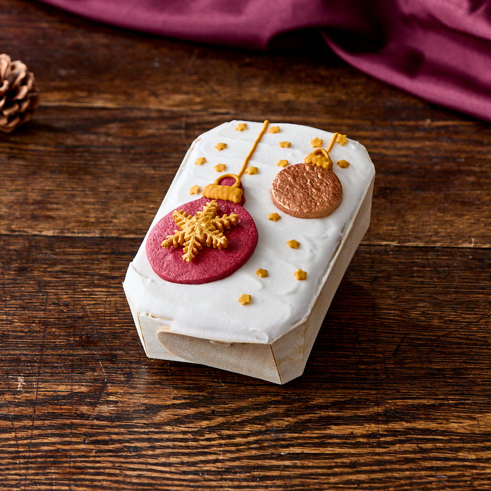 Sultanas, currants, salted butter (MILK), EGGS,  flour (WHEAT), raisins, brown sugar,  apple, ground almonds (NUTS),  black treacle, glace cherries, mixed Peel,  ground almonds (NUTS), apricot marmalade, brandy (SULPHITES), salt, lemon zest, lemon juice, ground mixed spice, ground nutmeg, ground cinnamon, pastry( flour (WHEAT), salted butter ((MILK), salt), caster sugar, (EGGS), vanilla (fructose syrup, vanilla extract, propylen glycol, exhausted vanilla seeds, caramel)), royal icing (EGG whites, sugar, lemon juice), marzipan (sugar, almond (NUTS)), food colour (vegetable glycerine E422, mono propylene glycol E1520, silicon dioxide E551, E124 E129. E153, E172, E102, E171), spray (sugar, titanium dioxide E171, ethanol, water, sunflower oil, emulsifier (polysorbate 80 E433, propellants butane E943a, isobutane E943b, propane E944, Ethyl alcohol, colourings E1772)