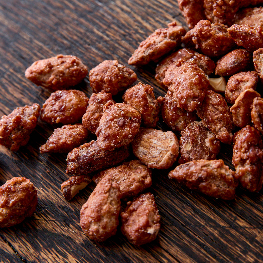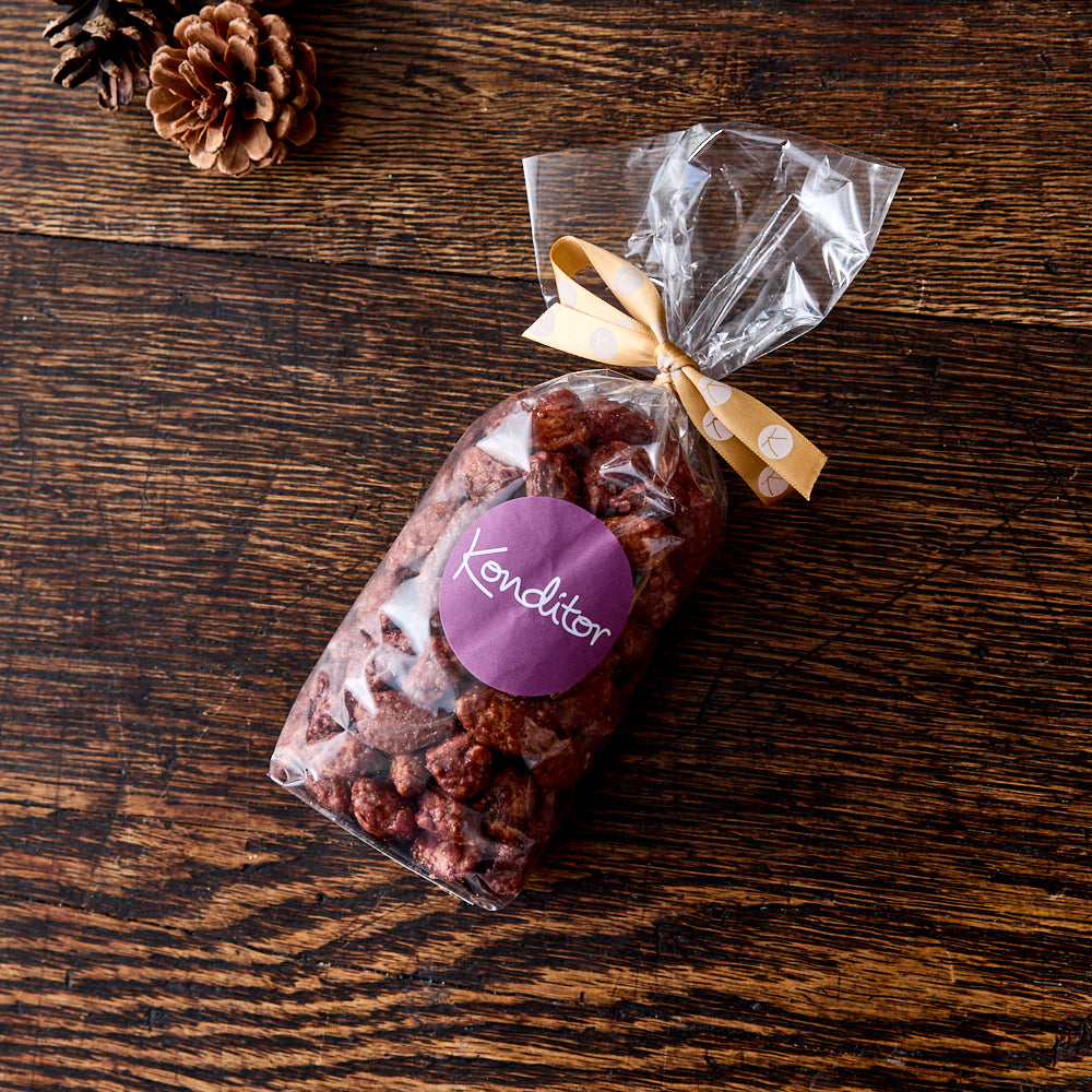 Selected Spanish almonds toasted and coated in a sweet caramel crust. Lovely to serve with coffee or scatter on your table for a naughty nibble.