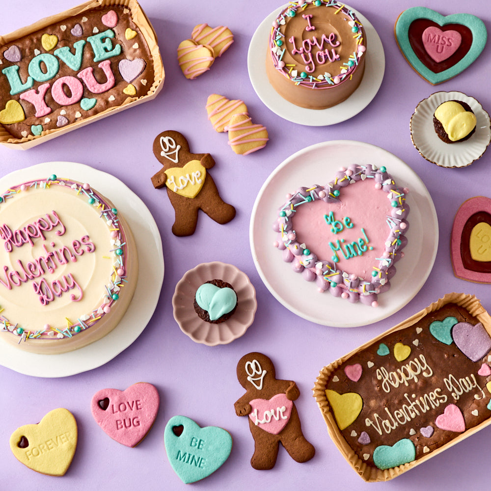 From heart-shaped cakes, indulgent brownies, deliciously sweet bundles to customisable gifts for two, Galentine’s treats, and nationwide Valentine’s delivery, there’s something to suit every kind of celebration.