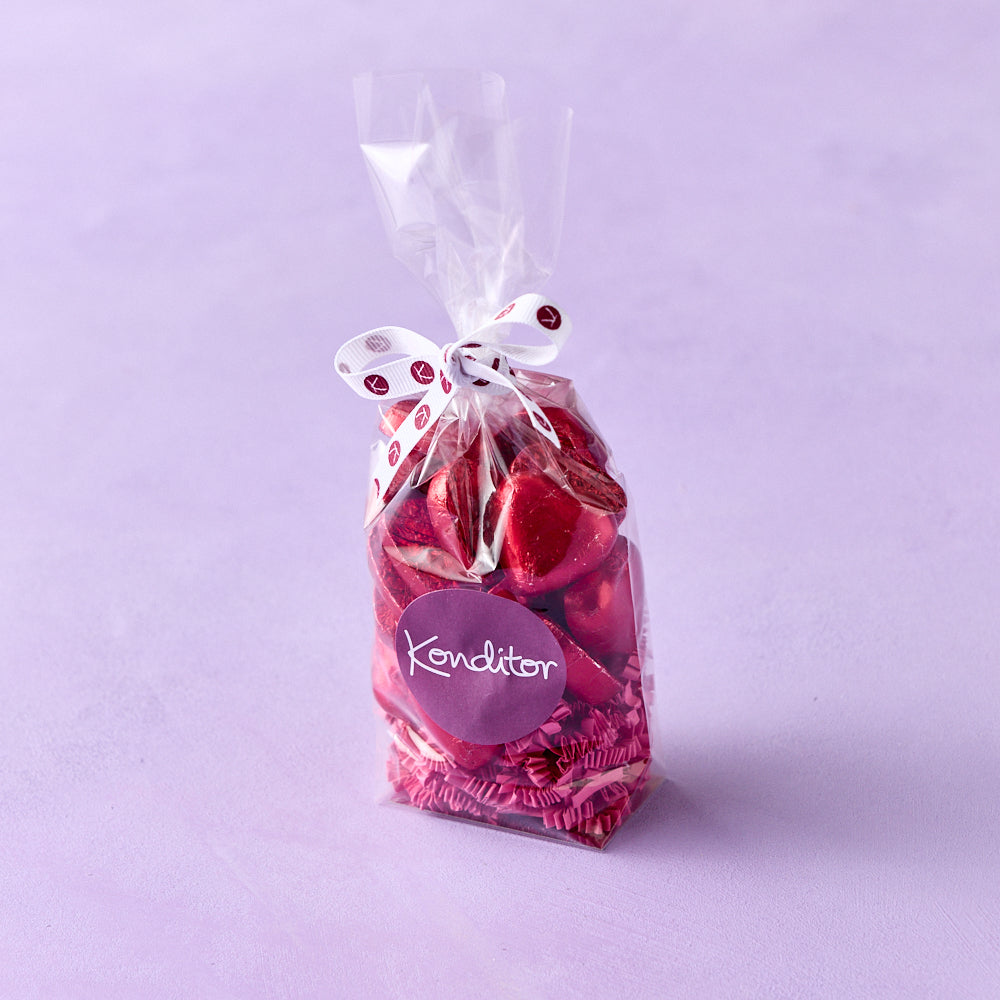 Nothing says Valentine's day quite like a bit of chocolate naughtiness, and these red, foil-wrapped chocolate hearts are just the ticket; utterly seductive milk chocolate with deliciously smooth hazelnut noisette centre! Made in Belgium exclusively for Konditor.