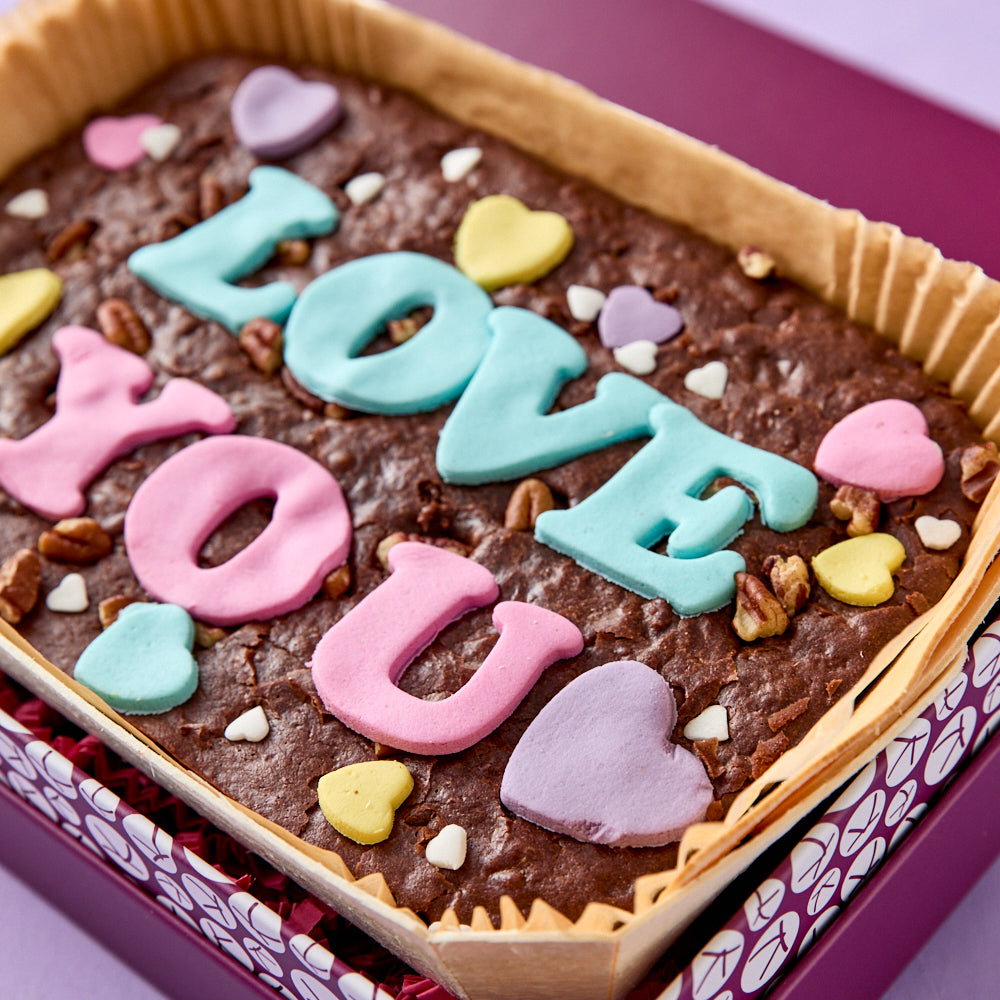 Vegan Valentine's 'LOVE YOU' Brownie Slab
