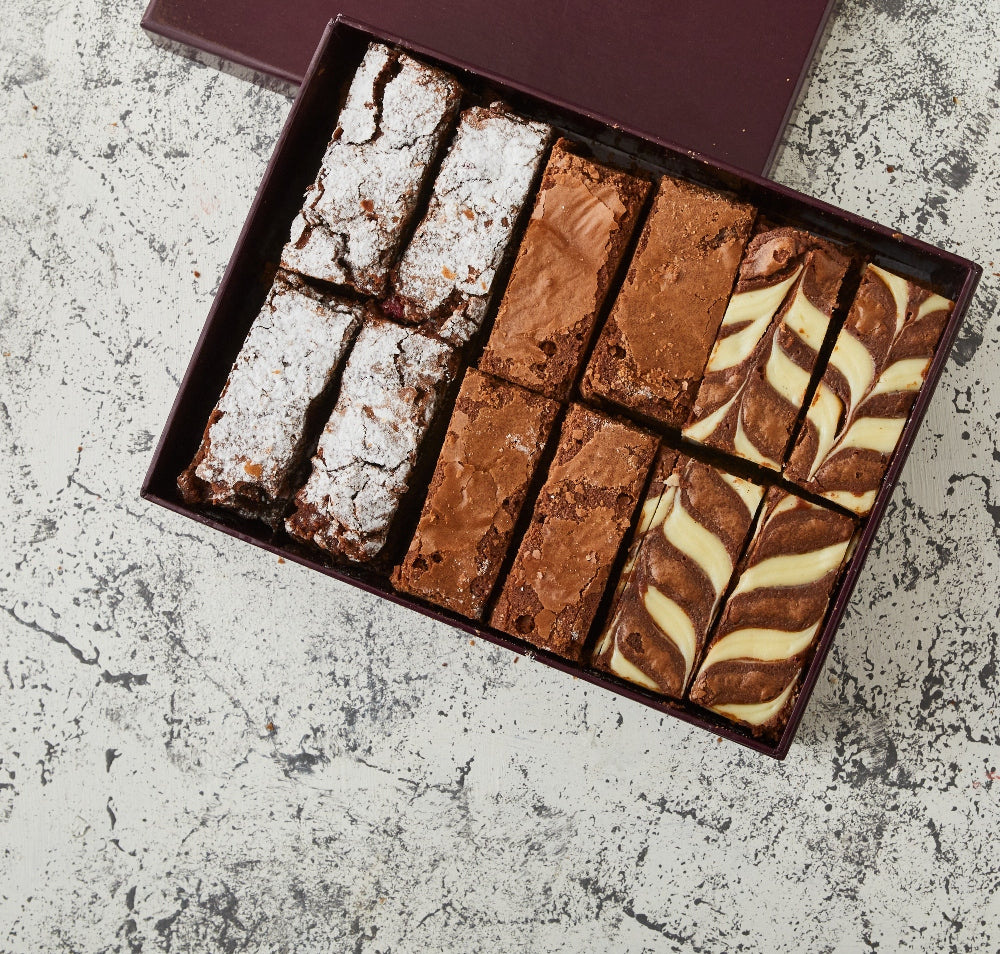 All brownie boxes and slabs can be delivered nationwide 6 days a week, and personalised with a gift message card too!