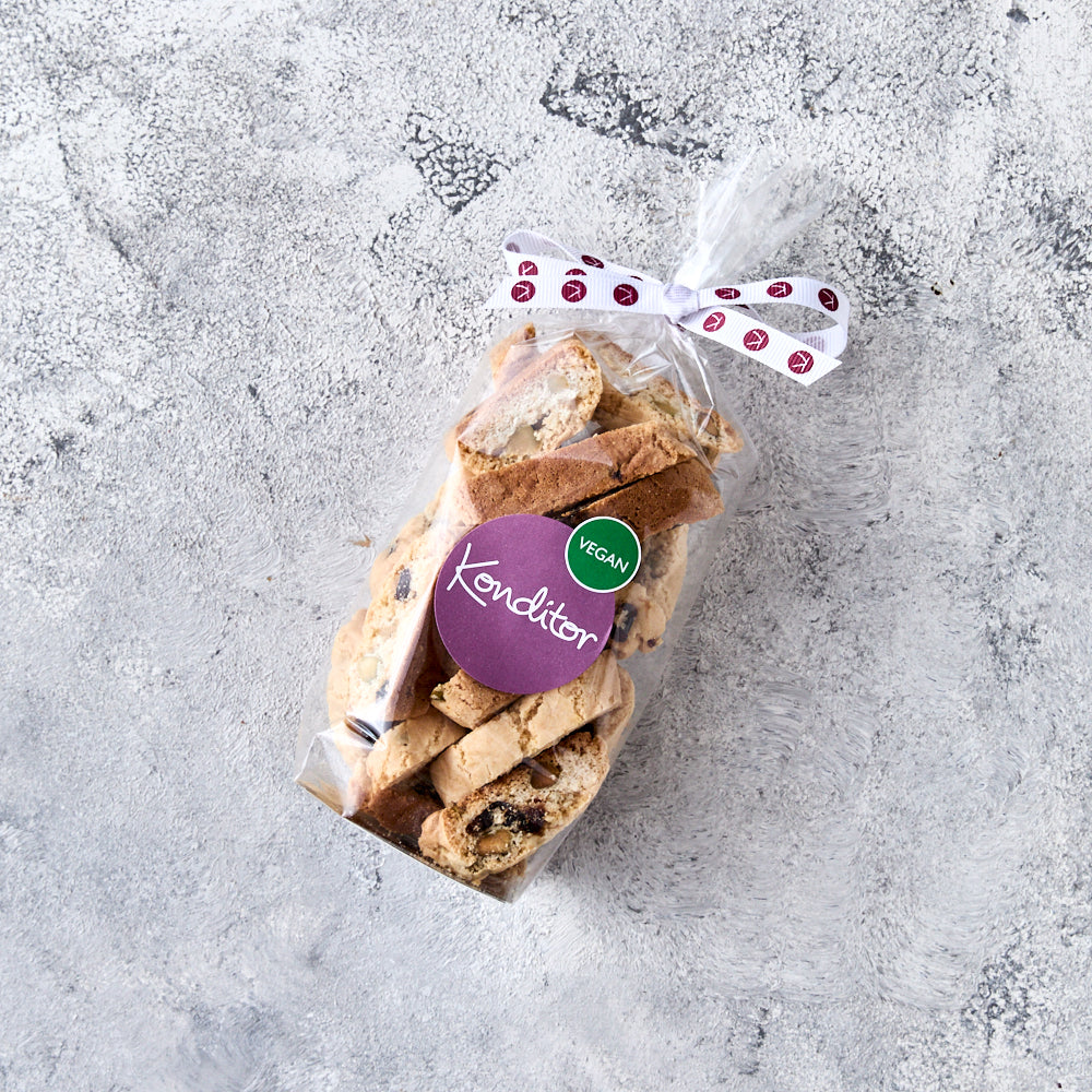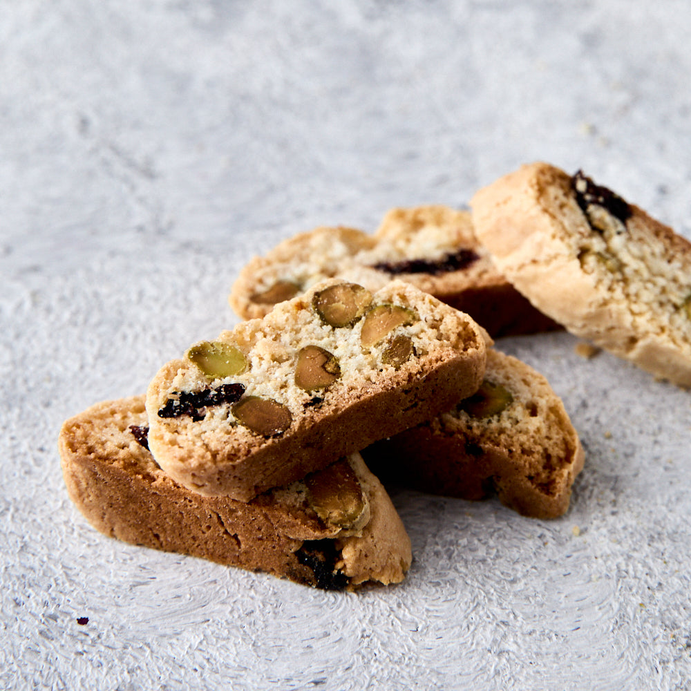 Indulge in our delicious Vegan Cranberry & Pistachio Biscotti, crafted with the perfect blend of cranberries and crunchy pistachios. Baked to a golden crisp, these plant-based delights offer a guilt-free treat that's rich in flavour and texture.